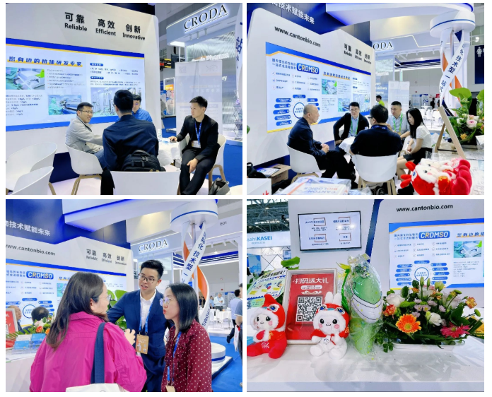 展台(E05)上,汉腾生物的抗体表达专家系列吸引了许多观众前来交流洽谈,汉腾生物创始人兼CEO沈潇博士、VP张春华、VP高晓伟、高腾生物总经理韦庆焜带领工作团队热情接待并深入交流。观众对汉腾生物的技术服务作出了高度评价。