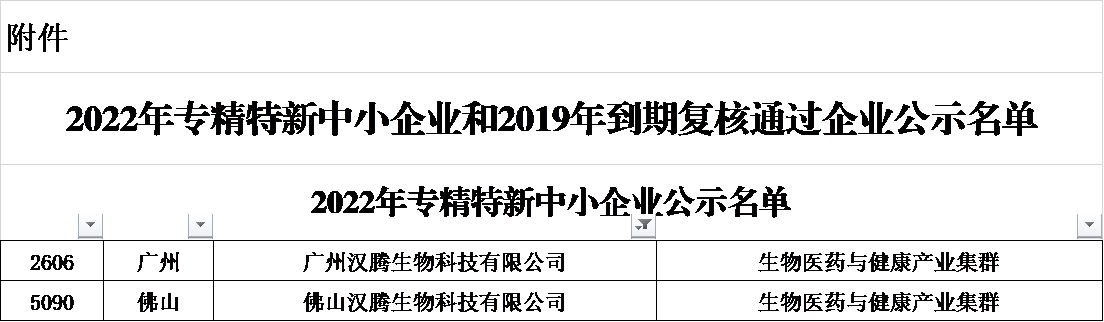 新年伊始传捷报,奋进拼搏启征程。近日,广东省工业和信息化厅关于《2022年专精特新中小企业和2019年到期复核通过企业名单的公示》,经企业自主申报、严格审查、专家评选、审核复核等程序,汉腾生物(开云网页版登录入口和佛山汉腾生物科技有限公司)凭借专注于细分市场、创新能力强、市场占有率高、质量效益优等运营优势,成功获评“2022年度广东省专精特新中小企业”。